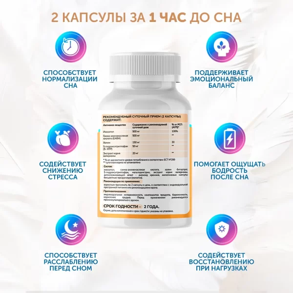 Продукт подходит для тех, кто сталкивается с переутомлением, тревожностью, нарушением сна или просто хочет улучшить качество ночного восстановления. Комплекс не вызывает привыкания и дневной сонливости.